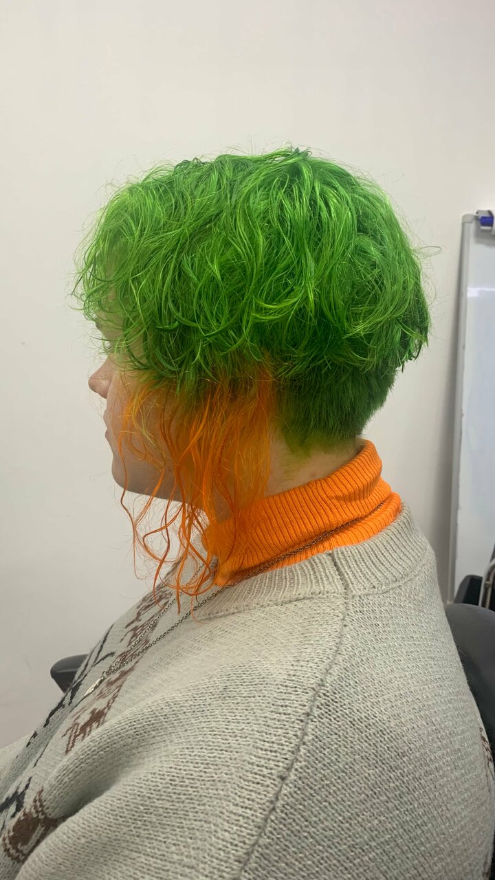 Второй раз приходу в качестве модели. Максимально довольна ярким окрашиванием! У меня много волос, густые и кудрявые,но ученица отлично справилась, пусть и довольно долго, но к этому нужно всегда быть готовым, когда идешь в качестве модели.